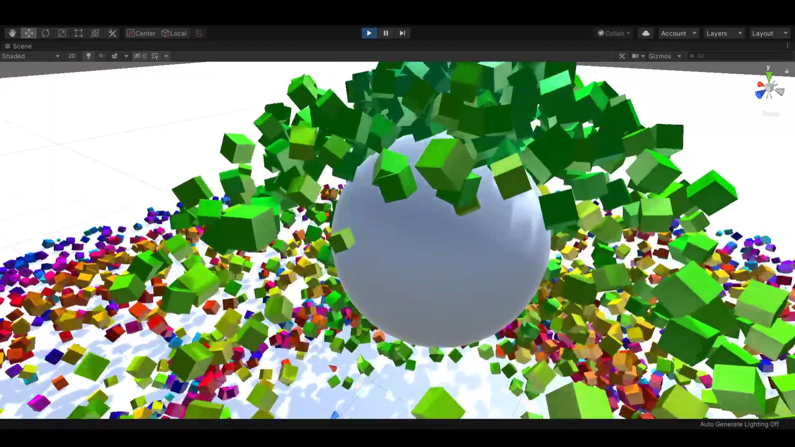 Done in several weeks as Computer Graphics course-project, we used rendering utilities provided by Unity-CJ-Lib and Unity’s compute shader to drive a pure GPU-based rigidbody system.